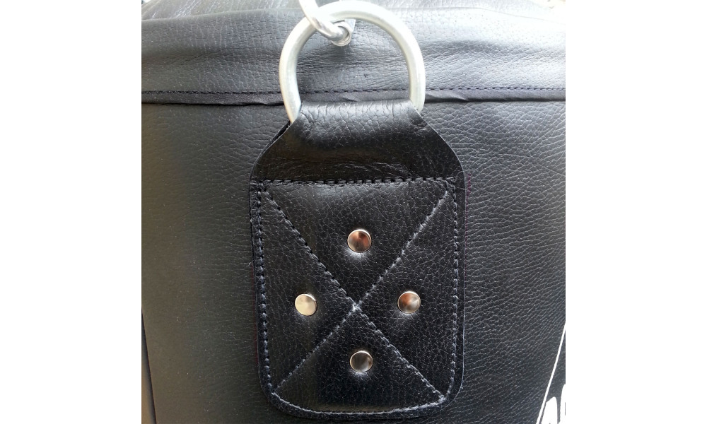 Мешок изготовлен из высококачественной натуральной кожи толщиной 2.5 мм. Цвет мешка черный.