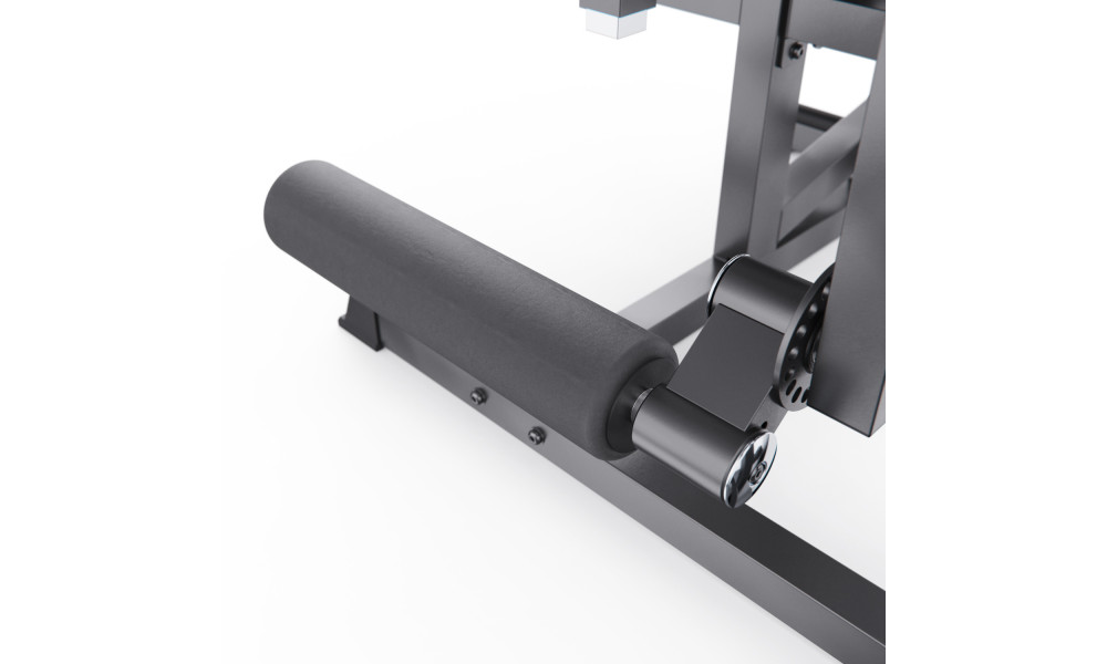 Индивидуальная настройка тренажера обеспечивает максимальный комфорт и эффективность. Большой диск для регулировки угла наклона руки и ноги имеет 24 уровня, а меньший диск для регулировки голеностопного ролика - 18 уровней. Регулируемые валики (6 уровней), спинка с регулировкой по длине и углу наклона, настраиваемое сиденье позволяют адаптировать тренажер под любые параметры пользователя. Это особенно важно для безопасного выполнения упражнений в домашних условиях.